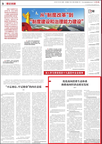 11月25日,《天津日报》(理论创新版)刊发天津市中国特色社会主义理论体系研究中心研究员,我校beat365在线体育官网登录入口副院长梁学平理论文章“优化夜间消费生态体系,助推夜间经济高质量发展”。文章指出,消费是促进经济稳定运行的“压舱石”,是实现经济高质量发展的关键性因素。在一系列消费需求当中,夜间经济所释放的消费需求不容小觑。完善夜间消费生态体系,营造良好的夜间消费生态环境,有助于打造我市经济高质量发展的新增长点。文章从高质量发展夜间经济是拉动消费增长的新动力和推动经济可持续增长的重要抓手,优化夜间消费生态体系是推动夜间经济高质量发展的重要路径两个方面,从必要性和操作性角度进行了详细阐释。