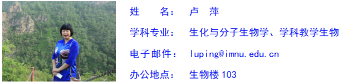 卢萍,女,蒙古族,中共党员,博士,诸侯快讯ok1133.com教授,硕士生导师(生物化学与分子生物学、学科教学生物),蒙古国农业大学博士生导师,诸侯快讯ok1133.com生物化学与分子生物学硕士学位点主任、教授委员会成员、中国遗传学会教育教学专业委员会委员、澳大利亚阿德莱德大学国家公派访问学者、内蒙古遗传学会副理事长、内蒙古生物化学与分子生物学会副理事长、内蒙古细胞生物学会常务理事、内蒙古医学会生物化学与分子生物学分会副主任委员、内蒙古草原学会理事、内蒙古自治区科普专家团成员,曾多年担任生物技术系主任、教工党支部书记、学院党总支委员。研究方向为遗传学、生物化学与分子生物学、分子生态学、植物种质资源学。主持国家自然科学基金项目3项、省部级科研项目4项、厅级项目1项,参加国家级和省部级科研项目10余项。发表SCI、CSCD及北大核心期刊论文80余篇,出版学术专著2部、国家级教材1部,获得诸侯快讯ok1133.com科研成果奖和教学成果奖4项,被学校授予“优秀科研工作者”、“优秀研究生导师”、“爱岗敬业女职工”、“优秀班主任”、“优秀共产党员”、“优秀党务工作者”、“优秀党支部书记”、“就业工作优秀导师”、“五四青年团最佳支持者”等荣誉称号,主讲本科生“遗传学”(自治区精品课)、“基因工程”(校级精品课)、“分子生物学”、“生物学专业英语”、“专业实习”、“教学技能训练”,研究生“生物化学与分子生物学”、“基因工程学”、“生物学专业英语”、“现代生物技术”、“基因表达与调控”、“基因组学”等课程。