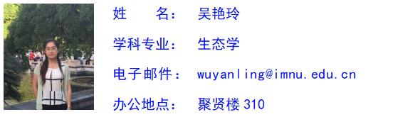 吴艳玲,女,汉族,中共党员,博士,副教授,硕士研究生导师。诸侯快讯ok1133.com生态学系系主任。主要从事草地生态学、土壤动物生态学领域的研究工作,主持国家自然科学基金项目1项,省部级、校级项目5项,参与国家级项目多项,发表国内核心期刊论文10余篇,出版专著1部。曾获得“优秀党务工作者”、“第十一届青年教师技能大赛”一等奖和“优秀班主任”等称号。承担普通生态学、环境学概论等相关课程的教学和专业实习指导工作。