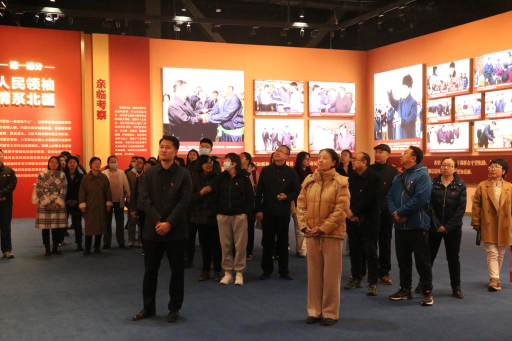 展览由“人民领袖 情系北疆”“高瞻远瞩 把舵领航”“五大任务 担当奋进”“聚焦主线 模范前行”“人民至上 初心如磐”“勇闯新路 挺进中游”等六个部分组成,通过图片资料、影视画面、全息投影、实物展品等多种形式,集中展示了习近平总书记亲临内蒙古考察、参加全国人大内蒙古代表团审议、回信贺信和来内蒙古出席活动的珍贵画面,生动体现了习近平总书记和党中央对内蒙古的关心支持,深刻阐释了习近平总书记交给内蒙古的五大任务和全方位建设模范自治区两件大事的内涵,全面解读《国务院关于推动内蒙古高质量发展奋力书写中国式现代化新篇章的意见》的重大决策部署,充分展现了内蒙古自治区党委牢记嘱托、感恩奋进,团结带领全区各族干部群众奋力书写中国式现代化内蒙古新篇章的生动实践。