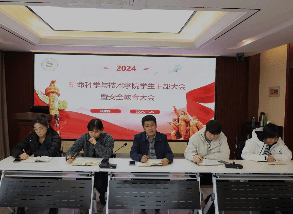 为进一步加强学生干部队伍建设,提升学生干部综合素质,同时强化安全意识,保障学生身心健康,11月25日,学院在生物楼智慧教室召开了2024年秋季第二次学生干部大会暨安全教育大会,院团总支负责人胡日查老师主持会议,党委副书记副院长高峰老师,学就办主任默原老师,辅导员老师们和学生会各部门部长及各班班长团支书参加本次大会。