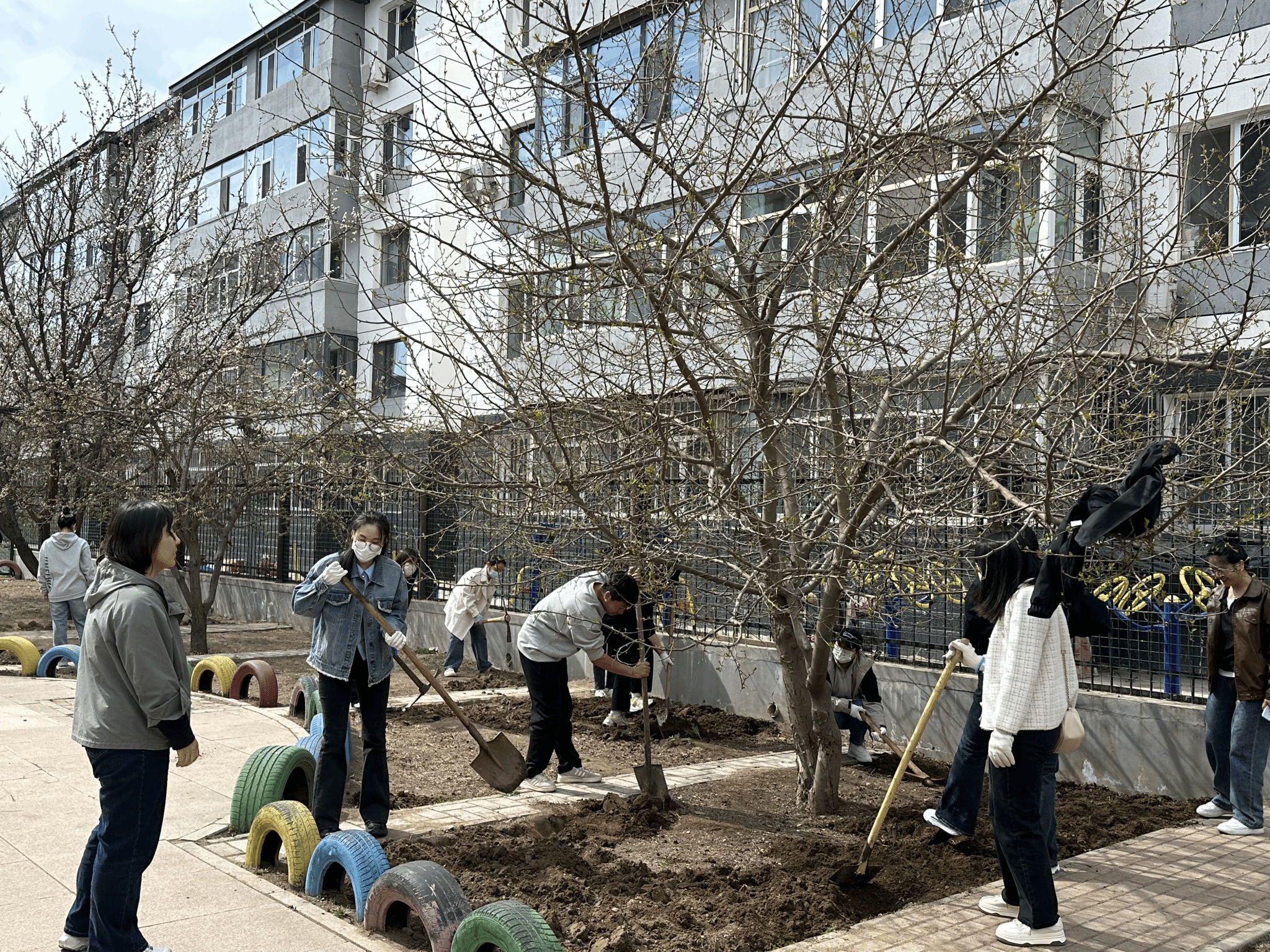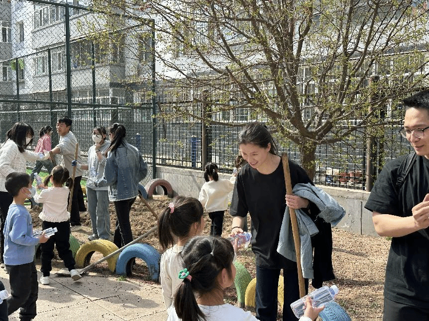 活动当日,研究生党支部与研究生会的志愿者们早早地来到幼儿园,在幼儿园的老师的带领下,志愿者们迅速分组,一部分人负责翻,志愿者们挥汗如雨,手中的铲子不停地翻动着土地,为接下来的种植工作打下了坚实的基础;另一部分人则负责除草,细心地拔除杂草和石头等杂物,确保试验田的整洁。在完成了初期的田间作业后,志愿者们又聚在一起,开始研究设计种植方案。他们结合幼儿园孩子们的年龄特点和兴趣点,精心挑选了适合孩子们种植的蔬菜和花卉,并制定了详细的种植计划并提供给园方。幼儿园的小朋友也自发地为志愿者送上饮用水,暖心的互动,瞬间拉近了彼此的距离,为活动增添了一抹温馨的色彩。