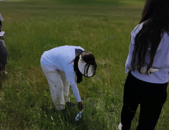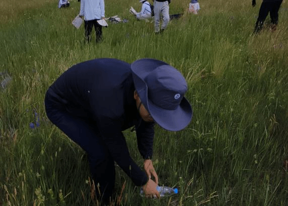 走出博物馆,同学们奔赴草原实习样地,开展“捡垃圾 护生态”实践。在蓝天白云与绿草如茵间,大家俯身捡拾垃圾,以实际行动守护草原生态。这不仅是专业实习的“生态课”,更是一堂生动的“思政实践课”——将“绿水青山就是金山银山”的理念,转化为守护生态的具体行动,诠释生态学子的责任与担当。