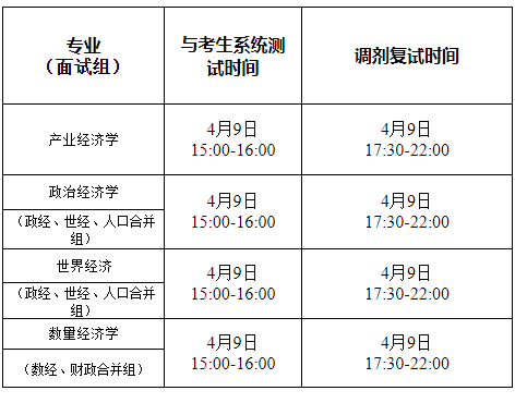 3. 考生应保持手机通讯畅通,方便工作人员联系,提前进行系统调试,系统测试时间和复试时间为: