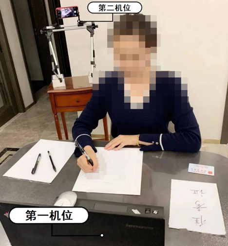 (4)复试时考生正对摄像头,保持坐姿端正,全屏显示上半身,露出双手和手臂。