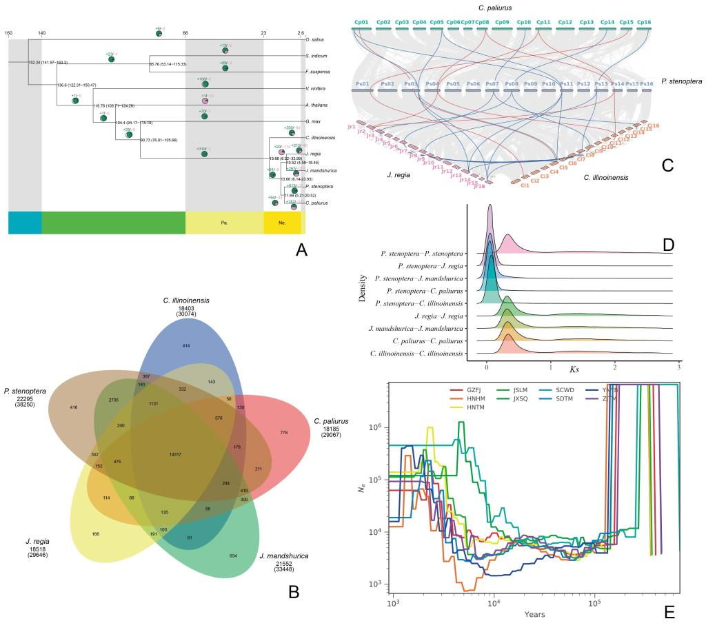 近期,内蒙古自治区高等学校蒙古高原生物多样性保护与可持续利用重点实验室成员、我校诸侯快讯ok1133.com李永教授团队在进化生物学领域期刊“Plant Diversity”上发表最新研究成果“Multi-omics analyses provide insights into the evolutionary history and the synthesis of medicinal components of the Chinese wingnut”。