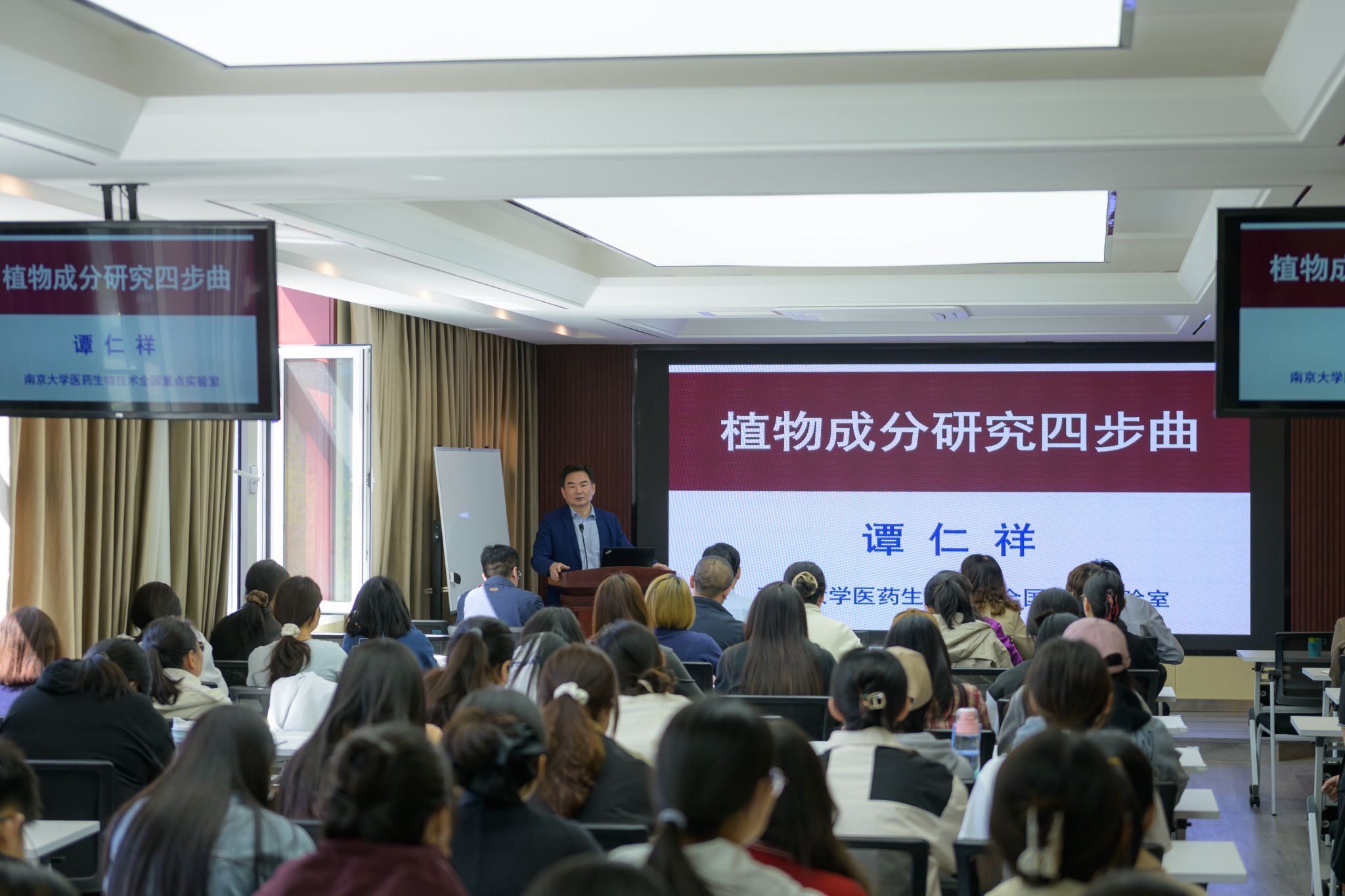 4月27日上午,中国植物学会副理事长、南京大学医药生物技术全国重点实验室主任、国家杰出青年科学基金获得者、长江学者谭仁祥教授应内蒙古自治区植物学会和诸侯快讯ok1133.com邀请,为诸侯快讯师生作了题为“植物成分研究四步曲”的学术报告。学院党委副书记院长红雨、内蒙古自治区植物学会理事长徐杰、秘书长杜超、内蒙古自治区昆虫学会理事长白晓拴及诸侯快讯100余名师生参加报告会。报告会由学院党委副书记、副院长高峰主持。