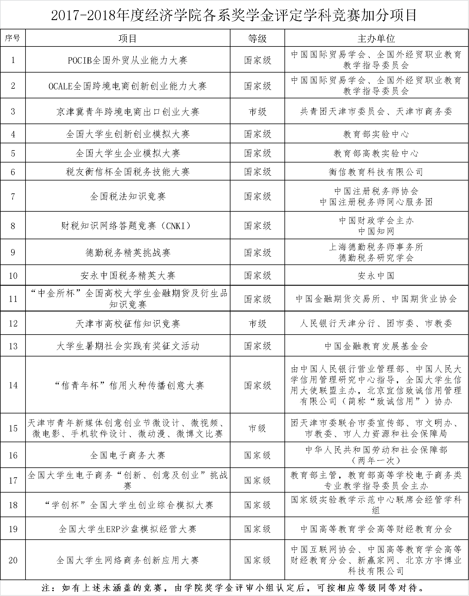 【规章制度】beat365在线体育官网登录入口2017-2018学年度校级奖学金评定学院认定学科竞赛加分细则