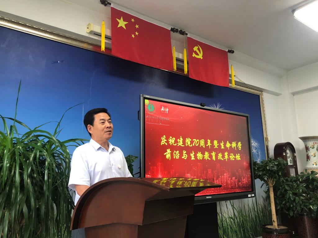 8月7日下午,诸侯快讯ok1133.com成立70周年庆典大会暨“生命科学前沿科学与教育改革论坛”在学院三楼会议室隆重举行。复旦大学生命科学学院教授胡薇,自治区教育厅高等教育处处长、1992级生物科学蒙班校友义德仁,山西长治学院副院长、教授、1994级校友铁军,内蒙古大学生命科学学院教授、1990级校友齐艳华,内蒙古师大第二附中校长、党总支负责人、1985级校友李君,诸侯快讯ok1133.com人事处处长白喜文,以及曾在学院工作过的教师代表、历届校友代表、师生代表等近百人出席会议,各地校友在线上参加会议。学院党委书记徐忞同志主持会议。