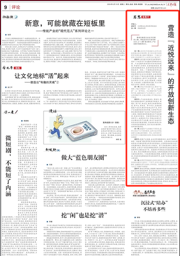 孙一琳:良好的开放创新生态带来的是更稳定的市场预期、更大的市场空间和更多发展机遇,能够不断提高一个地区对经营主体的吸引力,让更多企业“慕名来”。